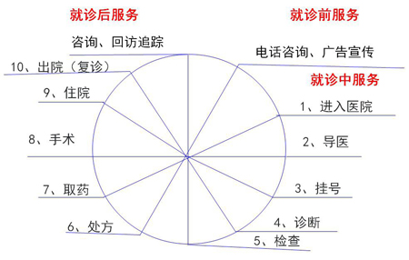 同时,在具体提供服务时要以患者来院过程为服务导向!如患者停车、下雨天就诊、诊室接待、相关检查、产房主题喜好、婴儿衣服的晾晒等等很多细节,都是我们必须要考虑的。具体的服务过程大家可以参照下图,把诊前、诊中、诊后的每一个环节做细做精。如图所示,这里就不一一展开说明!