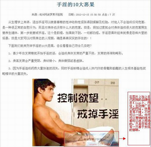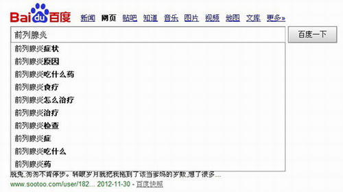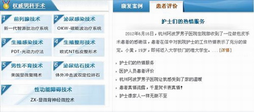 例如说一个前列腺炎患者通过搜索“前列腺炎”他进入到我们的网站肯定是想了解“前列腺炎症状”、“前列腺炎原因”、“前列腺炎吃什么药”、“前列腺炎食 疗”、“前列腺炎怎么治疗”、“前列腺炎治疗”、“前列腺炎检查”、“前列腺炎症”、“前列腺炎吃什么”等等这些实际需求的问题,确认自己的病能不能治 好,怎么治,然后我们的内容编辑人员针对这些内容满足他的需求,我们并不需要做太多的广告条,患者直接就会点击旁边的商务通咨询医生。这就是内容的精准化 营销的关键,试问我们多少医院网站做到了这一点呢?
